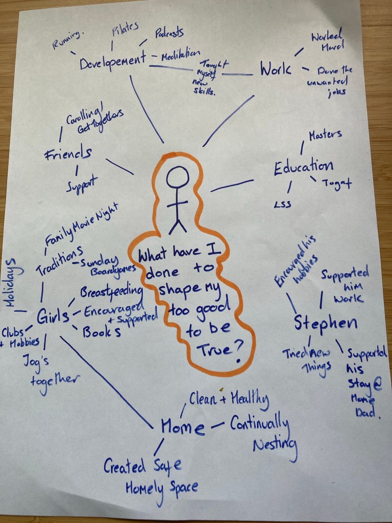We then got onto some other conversations and landed with a discussion once again challenging some deep seated beliefs. We exposed the fact that when it comes to the bad events of my life I blame myself, but when it comes to the good things it was nothing to do with me. I know right seams like an obvious conflict. How can you be responsible for one and not the other. Until I had spoken with Chris I was not really aware that this stark contrast existed but exist it does. So now after the session I have come up with my own homework. I am trying to write down all the things I can think of which I did and have contributed to my “To good to be true” existence. this is what I have so far…