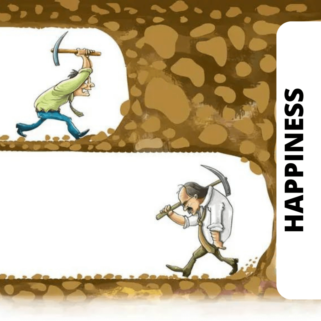 I am often reminded of this cartoon. In the original they are digging for diamonds but I think happiness is a much better goal.